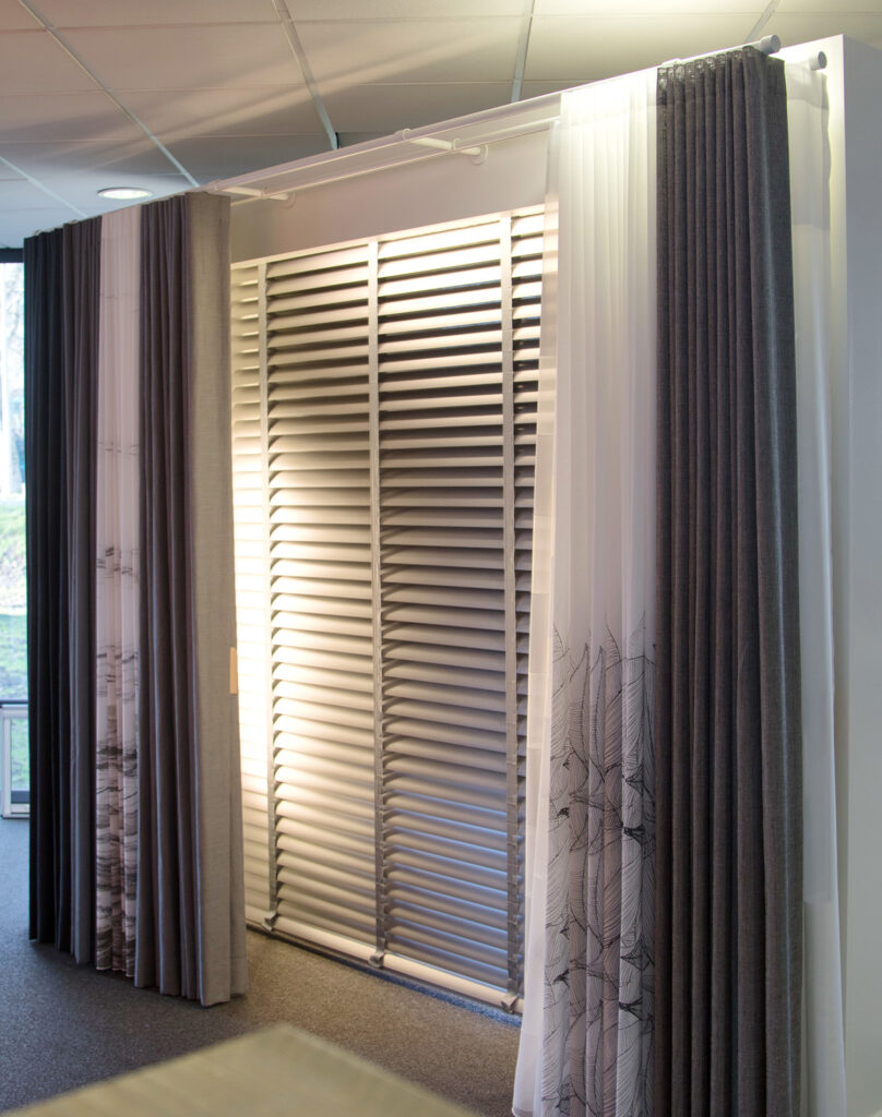 Bij Interdrape BV kunt u bijna ons volledige assortiment op ware grootte bewonderen. Of u nu op zoek bent naar een terrasoverkapping, zonnescherm, rolgordijnen of een combinatie van raamdecoratie en gordijnen, alles is in de showroom te zien. Zo krijgt u een duidelijk beeld van hoe het eindresultaat er bij u thuis uit zal zien. Van kleuren en materialen tot diverse uitvoeringen en afwerkingen – wij zorgen ervoor dat u niet alleen goed geïnformeerd bent, maar ook volledig geïnspireerd raakt.